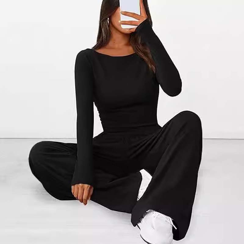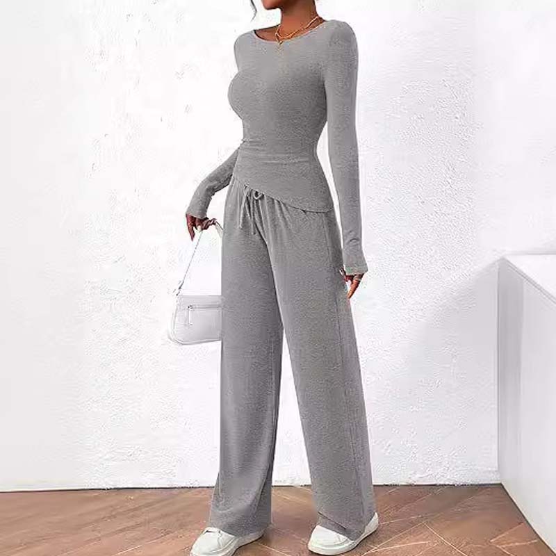 Set aus asymmetrischem Langarm-T-Shirt und Hose mit weitem Bein