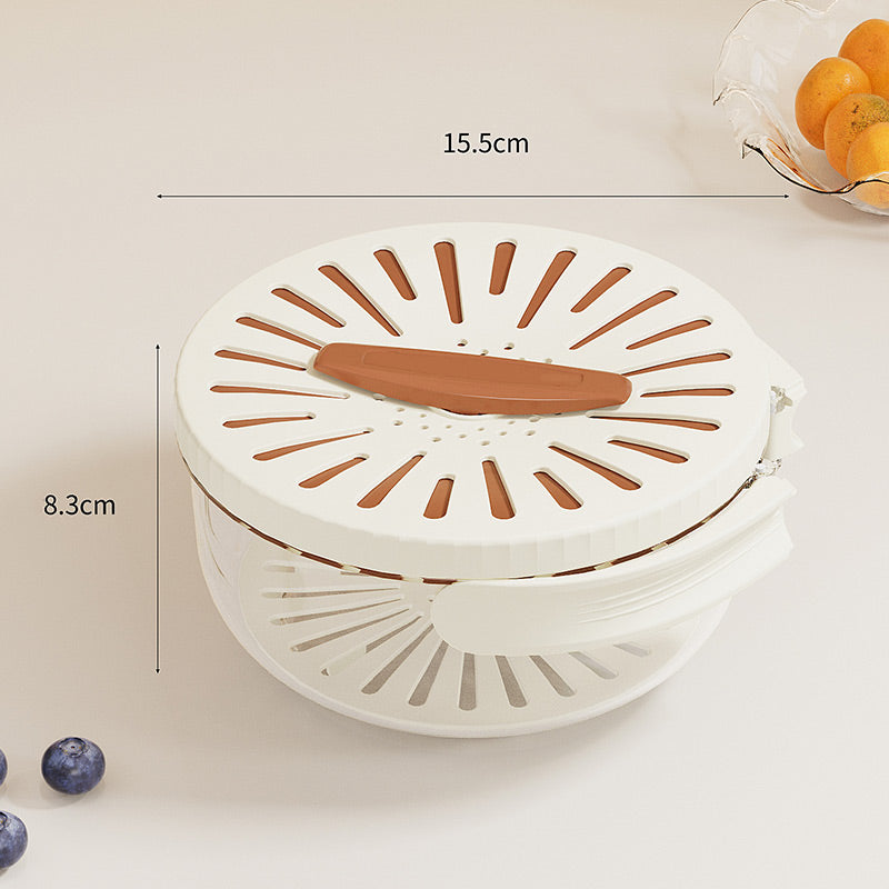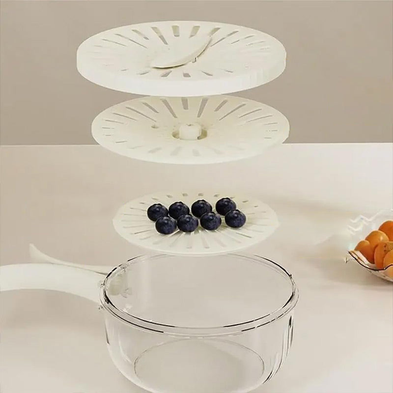 Die obere Siebschale lĂ€sst sich zum einfachen Abtropfen direkt nach dem Waschen umdrehen â so bleiben Ihre HĂ€nde makellos.