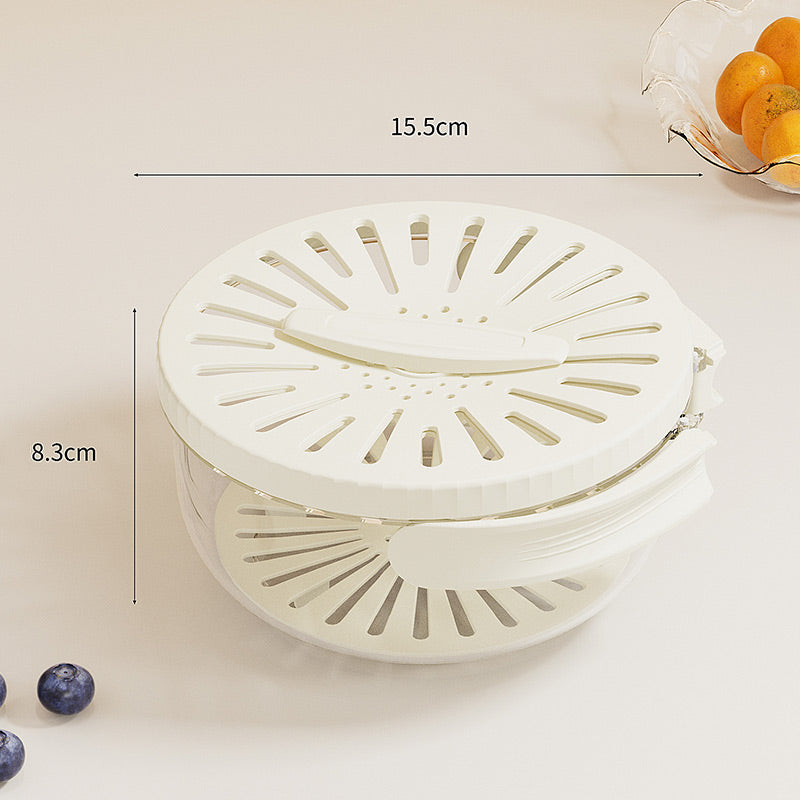 DRAINAGEWANNEN-DESIGN: Ausgestattet mit einer Abtropfschale, die Obst und GemĂŒse trocken hĂ€lt und Wasseransammlungen verhindert. Ihr Obst und GemĂŒse bleibt frisch, trocken und knackig, ohne sich mit Wasser vollzusaugen.