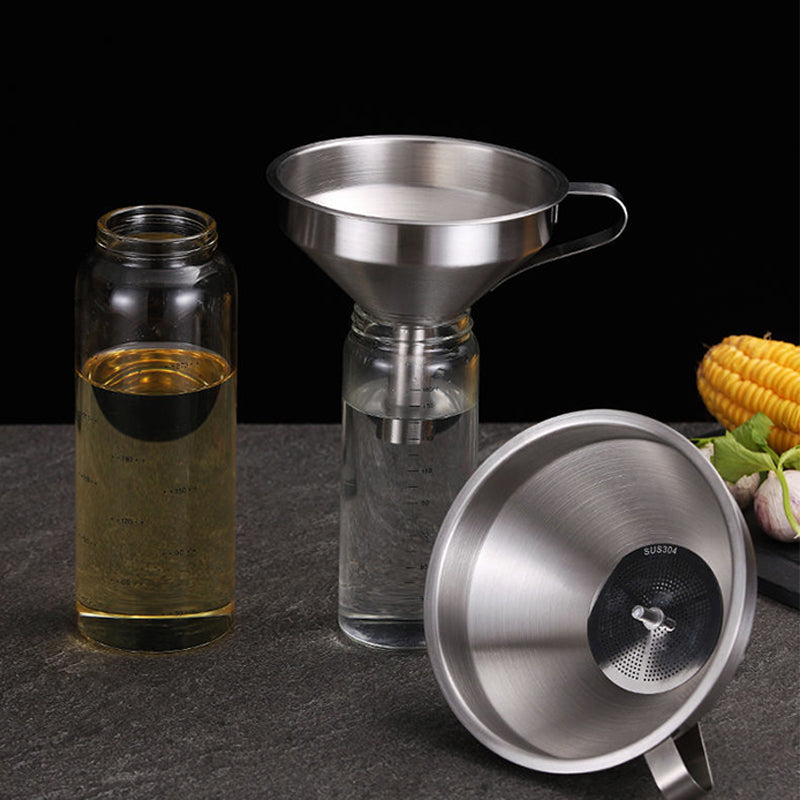 🛢️ Öltrichter aus Edelstahl mit Sieb für Küchenutensilien zu Hause🍳🔍
