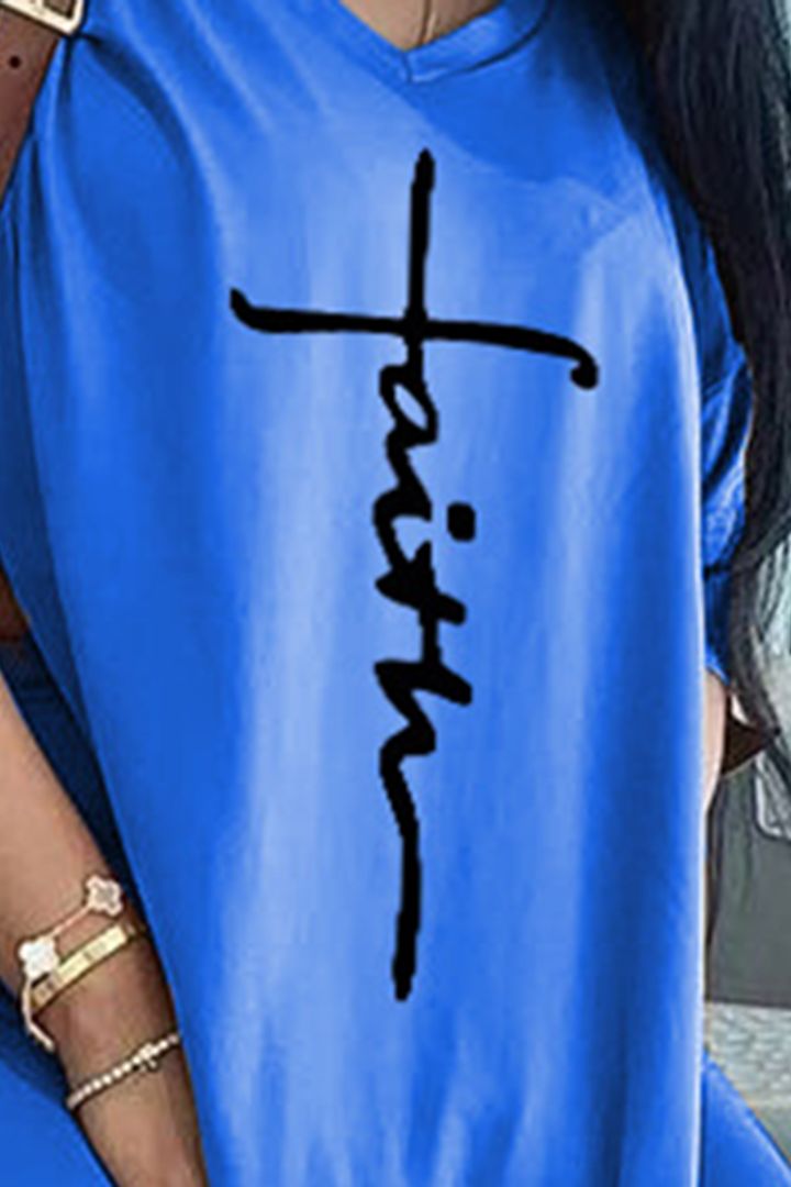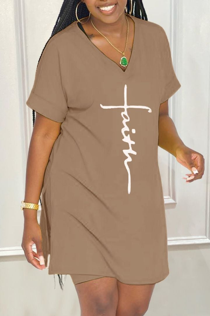 Zweiteiliges Set aus T-Shirt mit V-Ausschnitt, seitlichem Schlitz und Shorts mit Buchstabendruck
