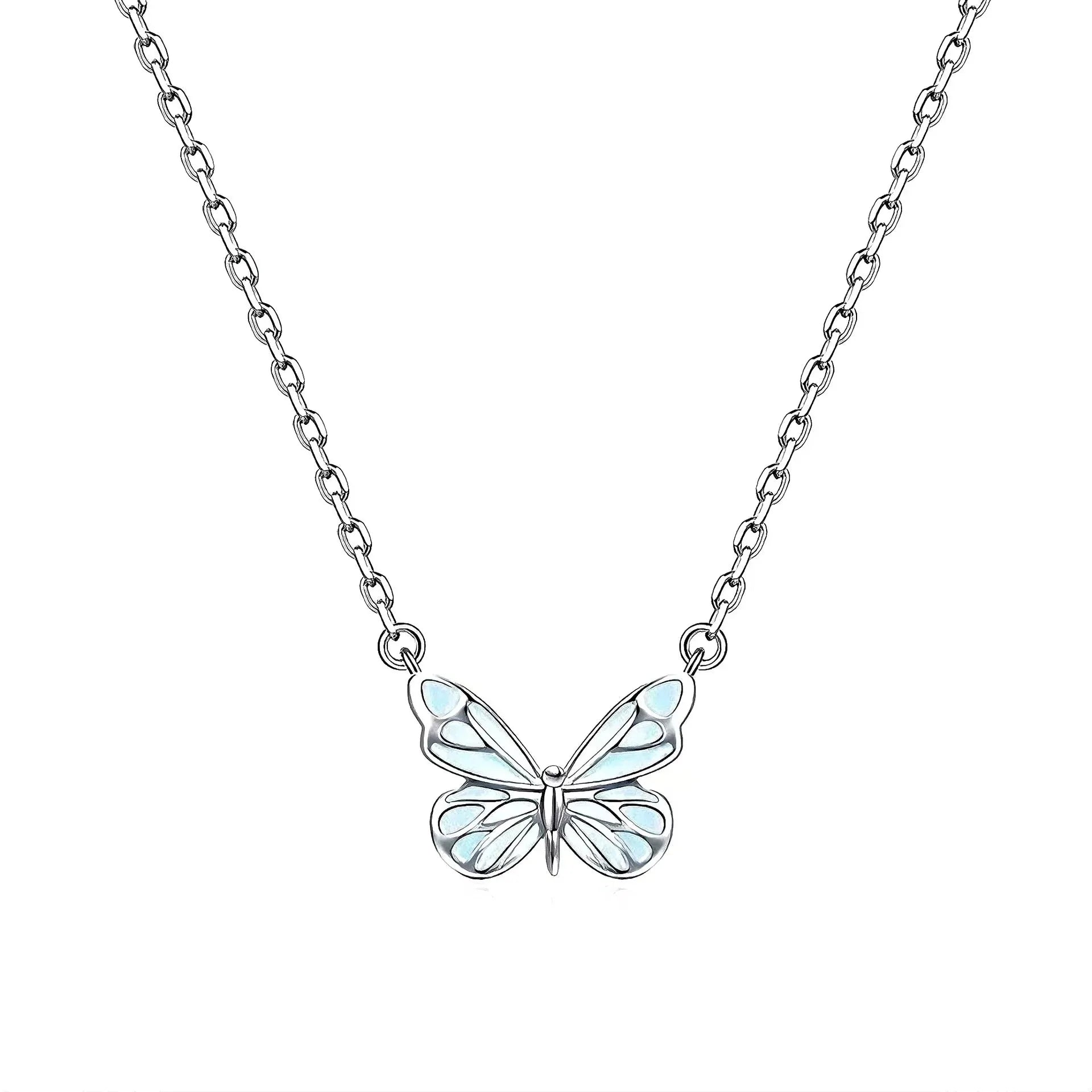 Der Schmetterlingsanhänger absorbiert tagsüber Licht und leuchtet sanft im Dunkeln, wodurch Ihr Stil einen subtilen Glanz erhält.