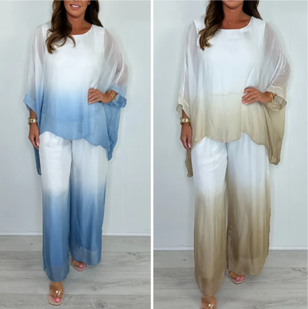 Paket beinhaltet: 1 * Mesh Mix Dip Dye Loose Flowy Top & Hosen-Set