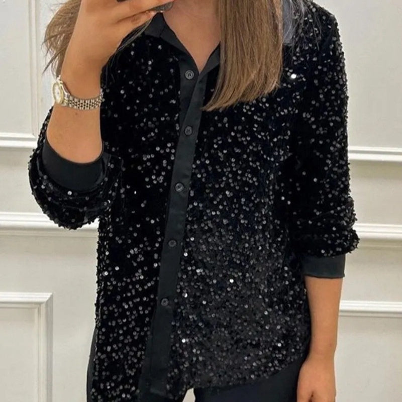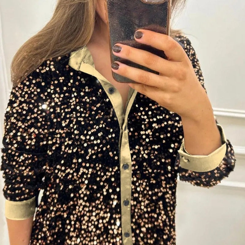 🌈50 % Rabatt für begrenzte Zeit💞Partyhemd mit Pailletten und Button-Down-Revers für Damen