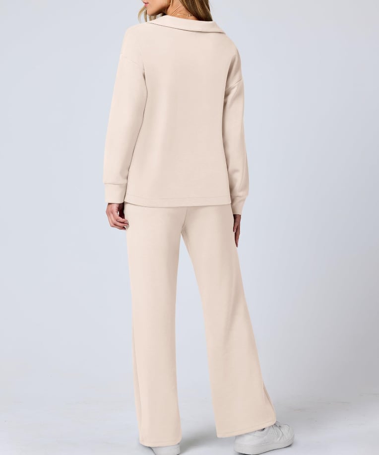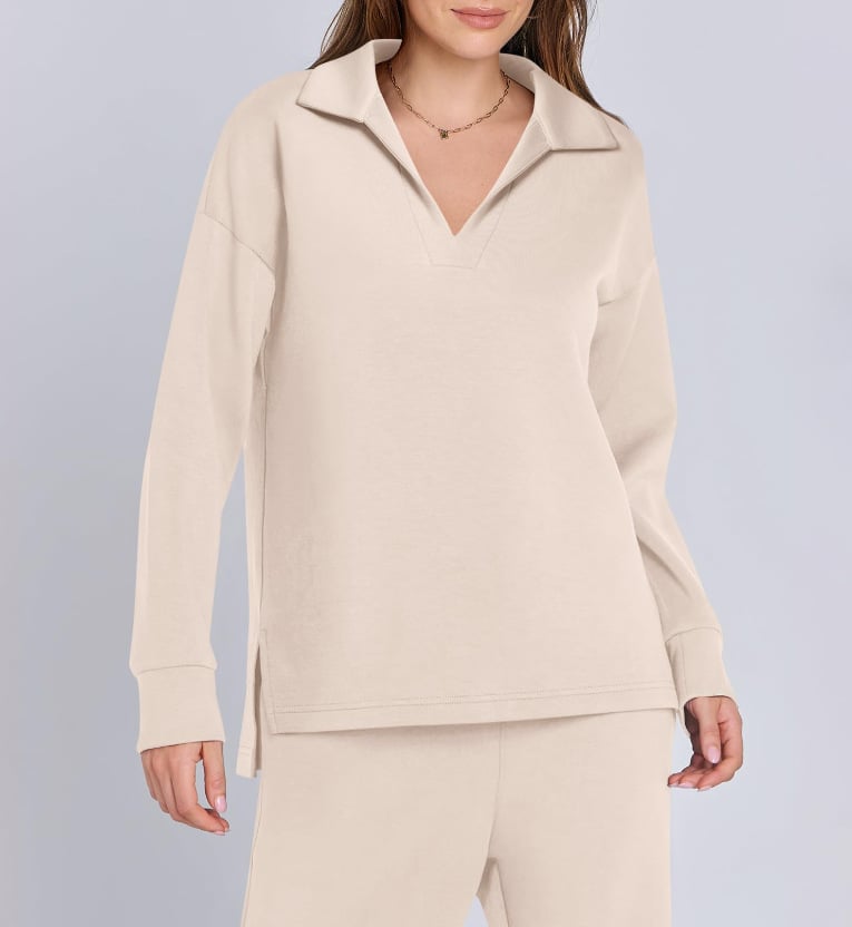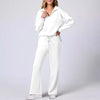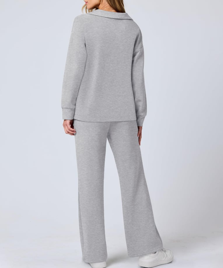 Die Sweat-Sets sind mit einem sportlichen Kragen, V-Ausschnitt und asymmetrischem Saum ausgestattet, hohe Taille mit Kordelzug, um eine individuelle Passform zu gewĂ€hrleisten, und einem lockeren Schnitt, der weite Beine zeigt. Der hohe und niedrige Saum bietet zusĂ€tzlichen Schutz hinten und Mittlere Dehnung fĂŒr einfache Bewegung.