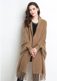 đčLangĂ€rmliger, lĂ€ssiger Schalmantel mit Quaste fĂŒr Damen