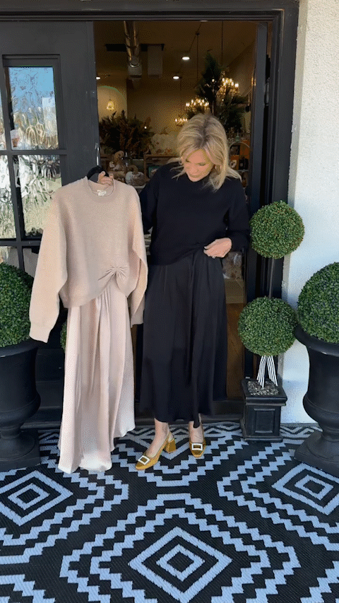Der weiche, warme Pullover harmoniert perfekt mit dem eleganten Kleid und sorgt für einen raffinierten Look. Dieses Set ist ideal für jeden Anlass und bietet sowohl Komfort als auch Eleganz.