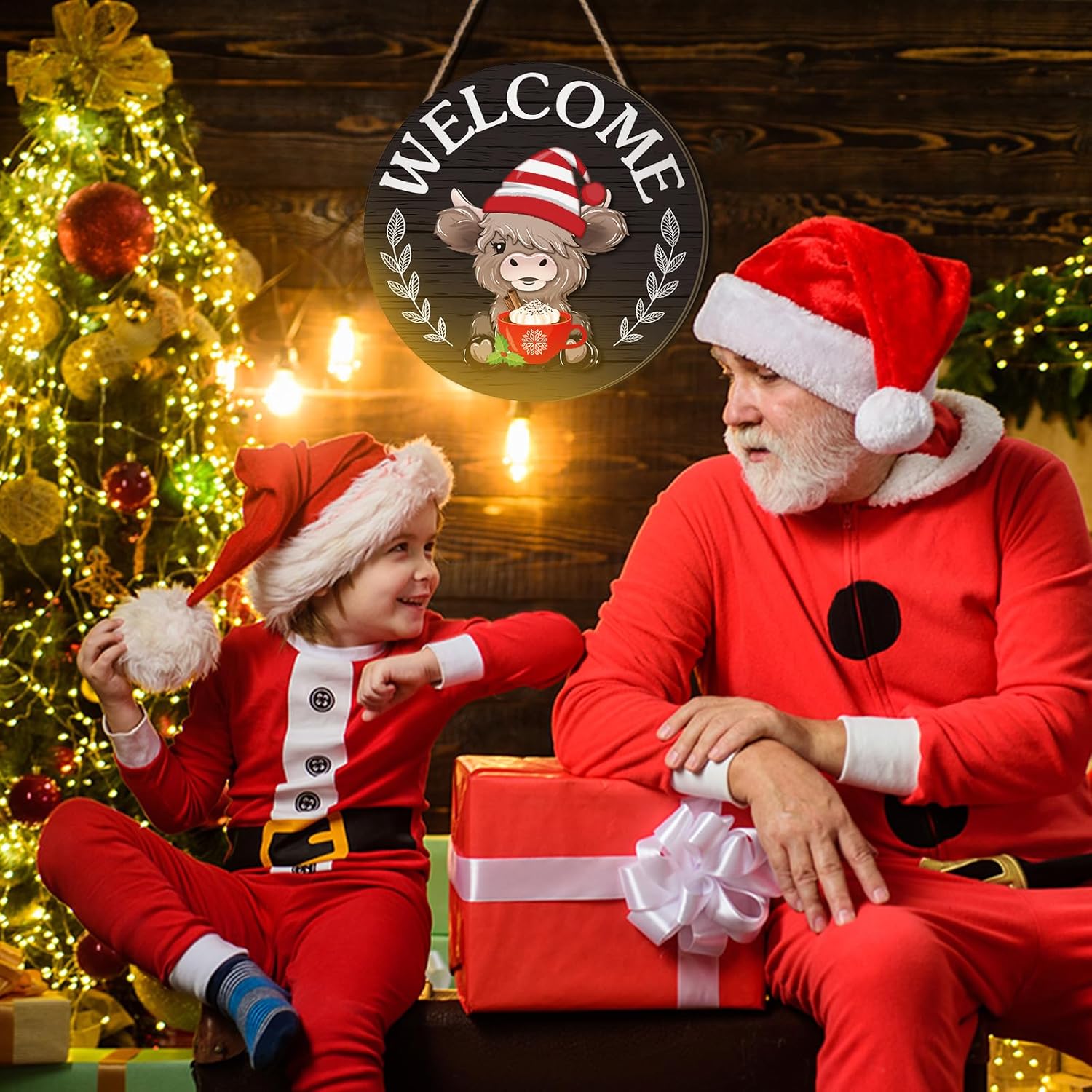 ⏰Austauschbares Willkommensschild mit Highland-Kuh-Motiv, mit saisonalem Magnet, abnehmbaren Hüten und Zubehör